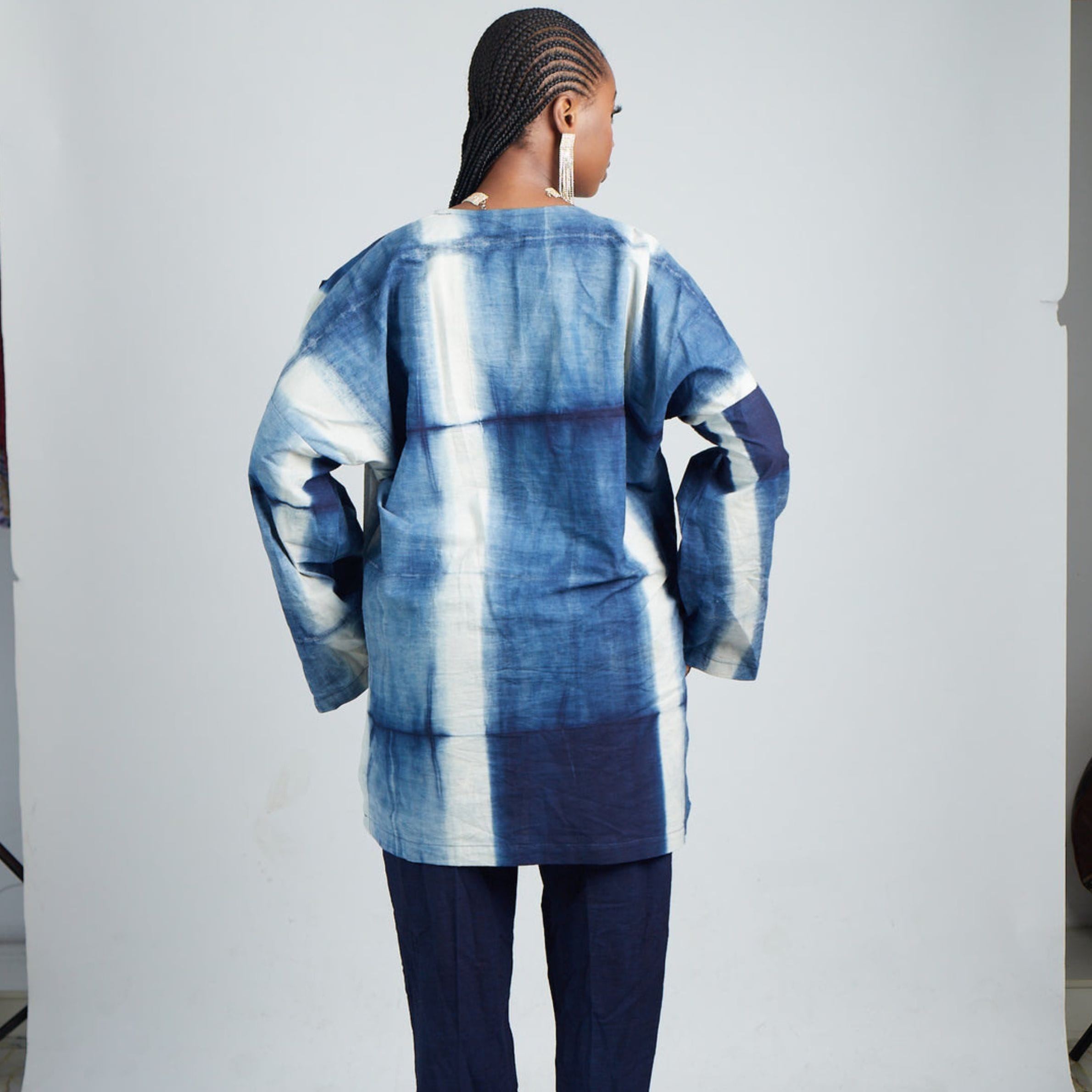 Experience the art of Nigerian textiles with the DFL Rocks Adire Range “Iyanude” Patchwork Tunic. Proudly African and one of our absolute favorite pieces, this tunic masterfully combines the rich heritage of Adire fabric with contemporary design, creating a truly vibrant and unique outfit.