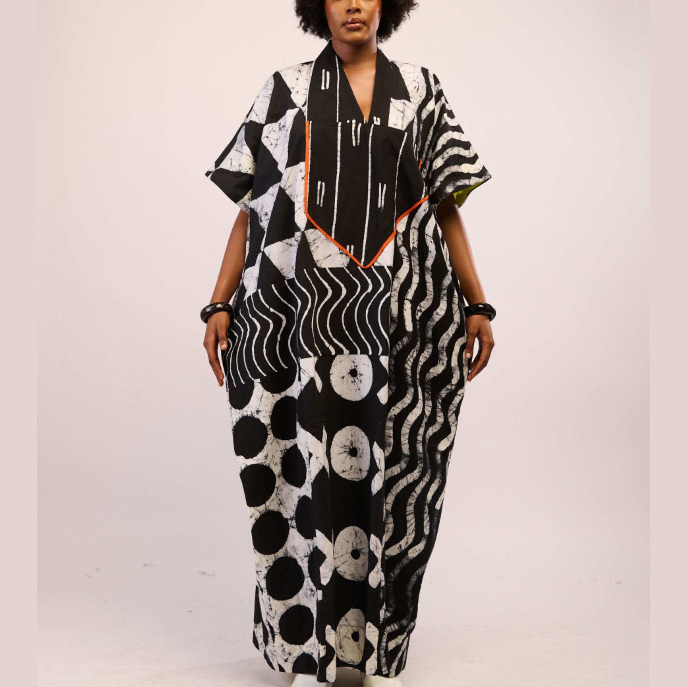 Embrace the striking elegance of the Dye Lab Agbada in Monochrome Motif, a testament to the unparalleled artistry of an esteemed African brand.