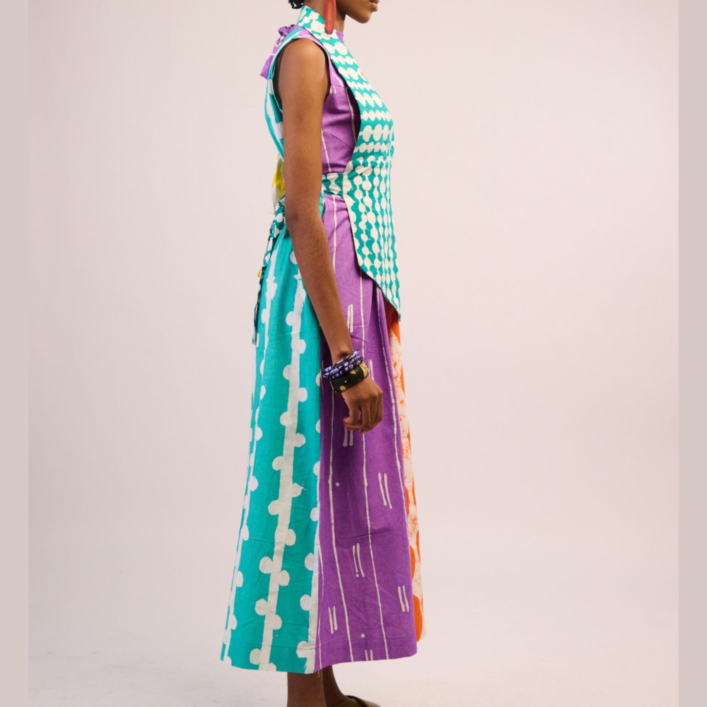 Each jumpsuit is a testament to unique African craftsmanship, featuring dynamic tangerine hues, rich purples, and teals in captivating, one-of-a-kind patterns.