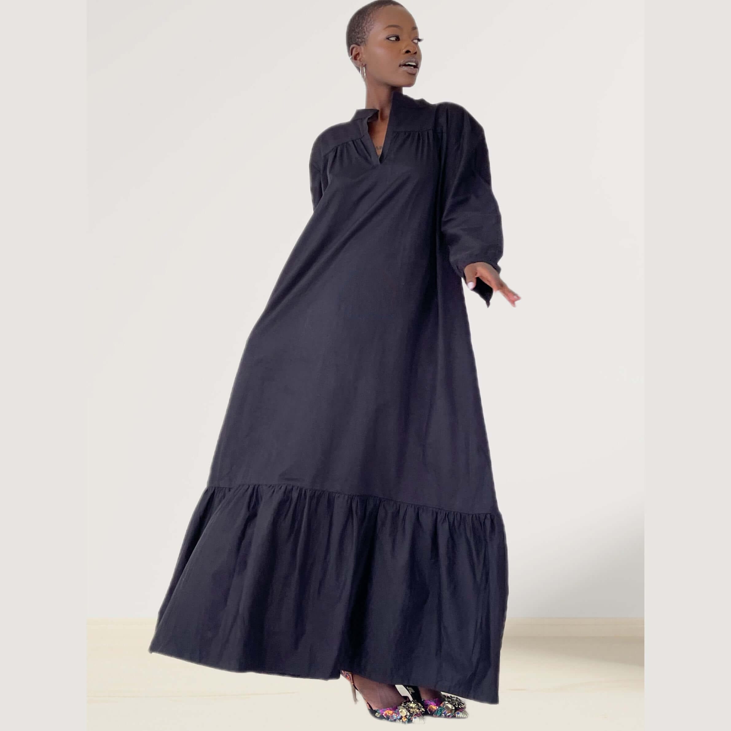 Elevate your wardrobe with our stunning plain black designer maxi dress, expertly crafted in Africa.